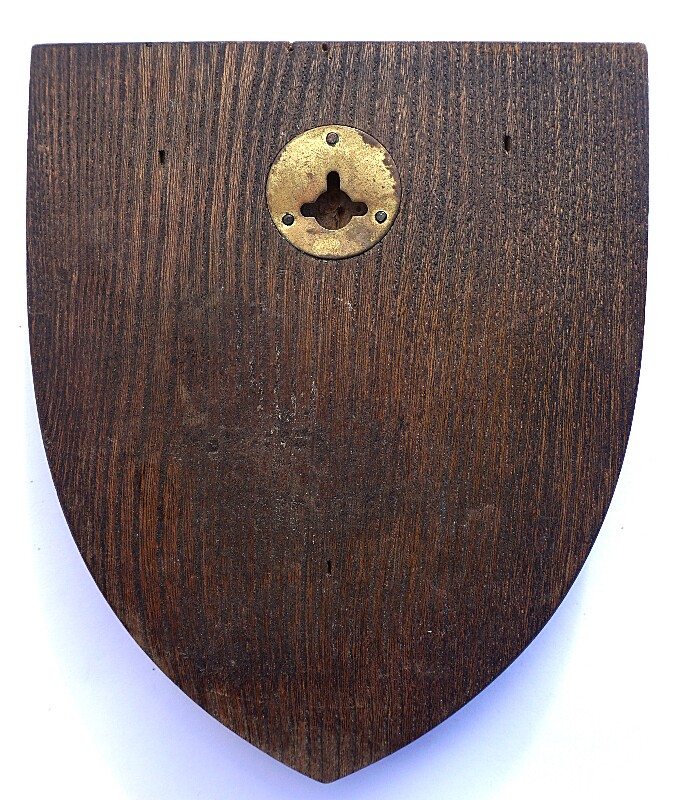 The RFC was established 13th April 1912 as the air arm of the British Army before and during the First World War until it merged with the Royal Naval Air Service on 1 April 1918 to form the Royal Air Force. This plaque has the applied wording to the top reading 'There's none so fair, as can compare, with the boys of the RFC' and below 'Presented by F. T. Barnes'. Sadly, we have no additional information on Barnes or the club where this shield was displayed or for that matter its age. Despite the loss of its associated provenance it is a quality plaque and would display happily as part of an RFC or aviation related collection. Measures 9.25" x 7.5" (23 cm x 19 cm). The reverse side carries an inset brass hanger for wall mounting. In very good original condition, with minor age related marks.